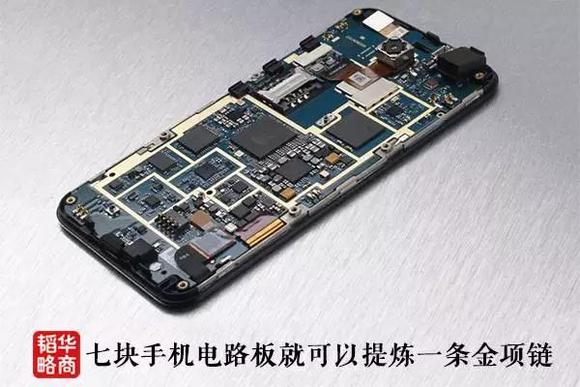手机电路板中的贵金属含量最多。据统计,1吨手机电路板能回收黄金1000克以上,这个“提炼值”比世界最大的兰德金矿还高出100倍。业内人士称七块手机电路板就可以提炼一条金项链。