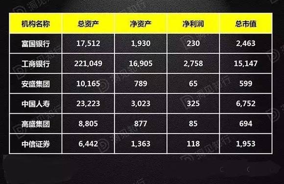 注:以上数据中,美国机构的单位为亿美元,中国机构的单位为亿元人民币;另外,全世界最大的保险公司是法国安盛集团AXA,但在美国发行了ADR,其市值超过美国本土的大都会人寿。