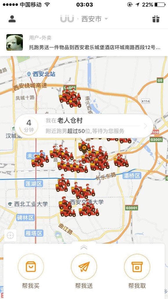 目前,UU跑腿用户已经超过500万,平台签约的跑男有30万+,为用户提供7×24小时全诚在线服务,同城60分钟的快捷服务。