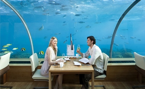 1200余个小珊瑚岛屿散落在碧蓝大海上,串联起的20组环礁就像是一串串珍珠项链,被誉为“上帝抛洒人间的项链”,这就是马尔代夫。在99%晶莹海水和1%白沙滩组成的马尔代夫,浮潜、海钓等活动向来受到追捧,然而常规的水上活动和出海项目已经不能满足大家对于海底世界的探索热情,水下餐厅成为新的潮流。