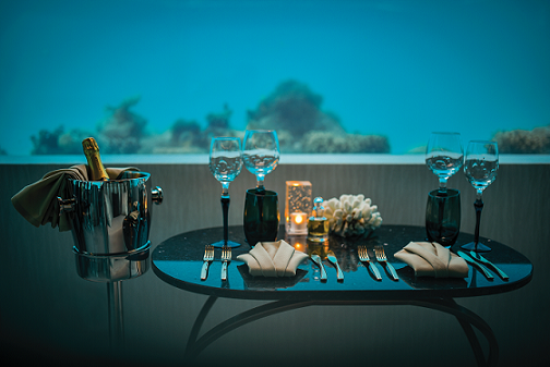 奥臻岛度假酒店提供独一无二的高级度假计划——The Atmosphere INDULGENCE™奢享铂金一价全包计划,一价全包内容除了常规的水上活动、出海项目、美食小吃等,入住四晚还能享受M6m(Minus Six Meters)水下餐厅免费用餐体验一次。