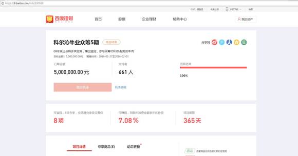 2015年9月,百度也不甘示弱,上线号称理财历史年化达8%的百度众筹“战马”。