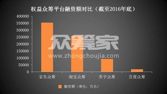 从众筹家人创咨询统计的权益型众筹平台截至2016年底的融资额数据对比可以看出,相比之下,百度众筹已被其他巨头甩开,对百度而言,百度众筹已犹如鸡肋。
