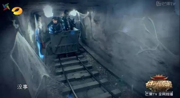 就比如第一期中当嘉宾们第一次进入奇楼后,黑暗中隐藏着陈旧的矿车,周围还四散着各种被尘土包裹的道具。