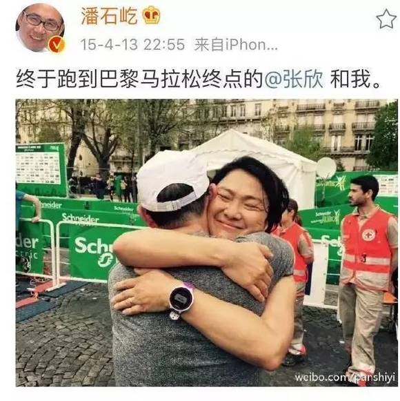 张欣的微博显示,她几乎疯狂跑遍了全世界的马拉松项目,还经常和潘石屹一起互动。2015年4月13日,50岁的张欣和潘石屹一起参加了巴黎的马拉松,这也是他们二人共同跑下的第一个马拉松。最后冲刺时,两人不约而同拉起手冲过终点。
