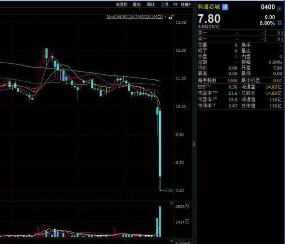 2017年5月22日,做空机构烽火研究发布了一篇名为《横跨十年的世纪骗局》,指科通芯城不但夸大收入及净利润,其线上平台也完全是一个骗局,该日科通芯城股价暴跌22%。
