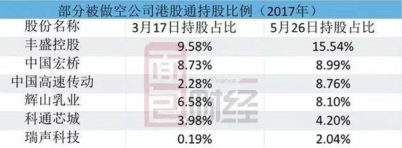 以被做空的瑞声科技为例,2017年3月17日,港股通投资者持有瑞声科技0.19%的股份,到2017年5月26日,港股通投资者的持股比例已上升到2.04%,持股比例在短短两个多月内,上升了十倍左右。此前,被做空的辉山乳业,内地投资者的持股比例也在大幅上升。