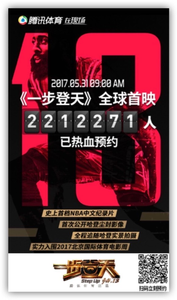 今天,以哈登为主角的史上首档NBA中文纪录片《一步登天》全网上映播出!
