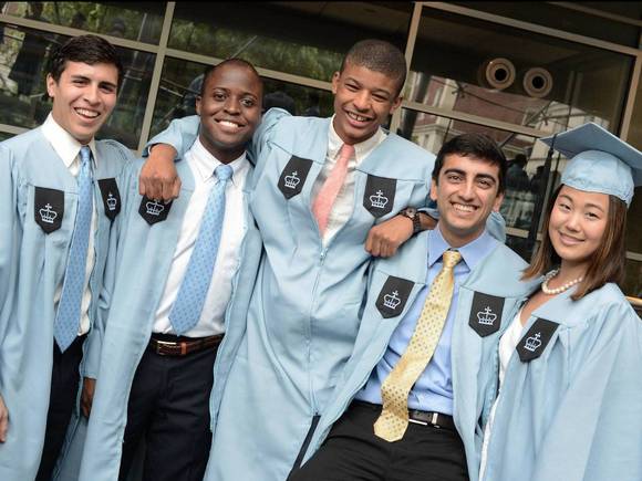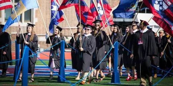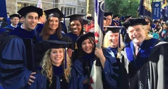 哥大的淡蓝色学士服,想必是大家最熟悉的。不论学位高低,毕业生们都可以穿上以哥大主题色为底色的长袍。而不是像其他学校那样,只有到了博士这个等级,才可以穿一身学校色。