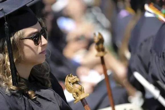 但到了硕士学位以上,用来区分学习领域的、五颜六色的套布又出现了,流苏大多数则回归了朴实的黑色。所以你在康大毕业典礼上,区分出不同学位的毕业生简直容易。庆幸国内的我们,不论啥学位,至少还有块套布戴戴。
