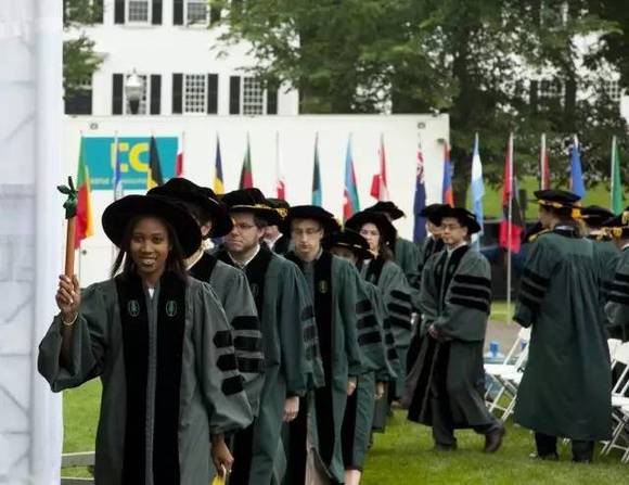 达特茅斯学院的学士服非常简单,简单到甚至不是每个学生都有垂布!但垂布却是学士服最有特色的部分……很多毕业生简简单单一身黑就出场了,也是很随性呢。再加上达特茅斯学院的主题色——墨绿色,又十分不亮眼,混在一片黑里,还真分不清绿没绿。