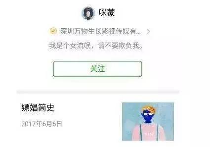 到了晚上这场火已经蔓延到微信平台,全明星探公众号消失在搜索栏,咪蒙在6月6日推送的头条《嫖娼简史》被删文,可见整顿事件仍在持续中。而在事发后,我们也立刻联系了一位被封的微博大V,了解了这次事件的来龙去脉,以及事件背后的“阴谋”。