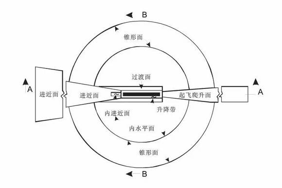 而事实上,关于多边形禁飞区,在《国际民用航空公约 附件14》中就早有描述,附件不仅对下图中的各个区域都有详细定义,而且还针对不同机场,给出了推荐的禁飞范围和高度。