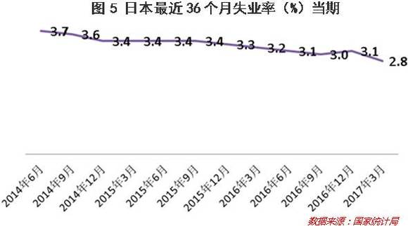 3、失业率:日本最近36个月的失业率(当期)如下图5,从中可以看到,失业率大体上呈平稳下降趋势。根据“菲利普斯曲线”理论,失业率的表现也呼应了通货紧缩向温和通胀转化的迹象。
