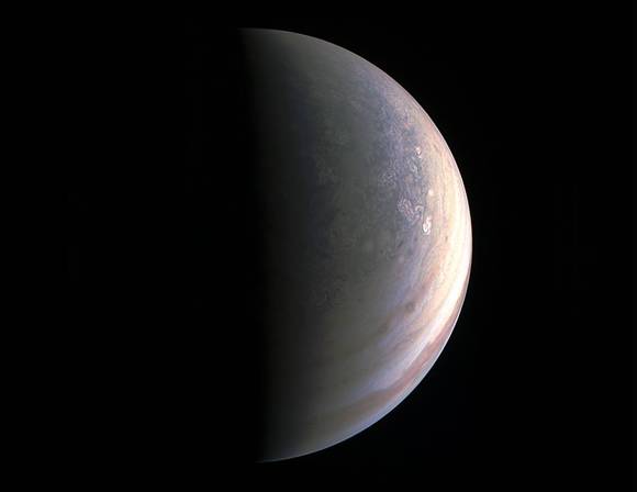 ▲ 朱诺号近距离飞掠木星2小时后拍下的木星北极区域。