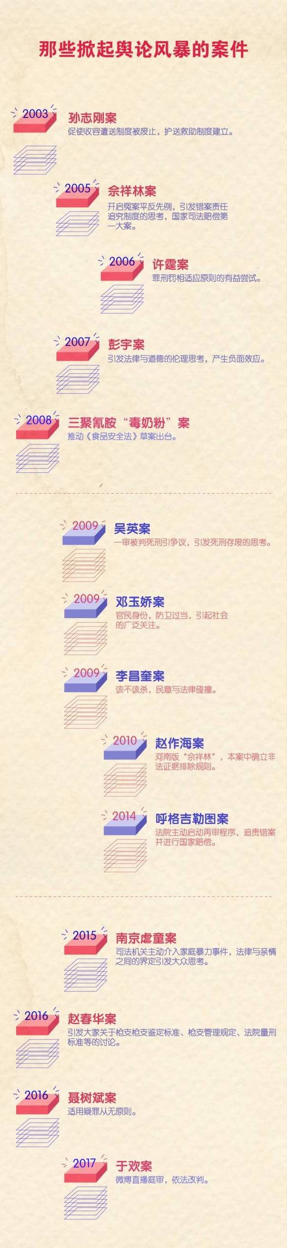孙志刚案后,遣送站改为救助站,“收容”变为“救助”;“三鹿奶粉”案后,筹备多年的食品安全法正式出台;呼格案、聂树斌案等后,一系列防止冤错案的制度出台,以审判为中心的诉讼制度改革加速推进……