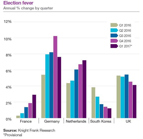 向来热度不减的英国市场就没有如此幸运了。今年一季度的表现同比要差于去年,房价增幅仅为4.1%。而得益于大选的关注度,法国和荷兰增长略显突出。
