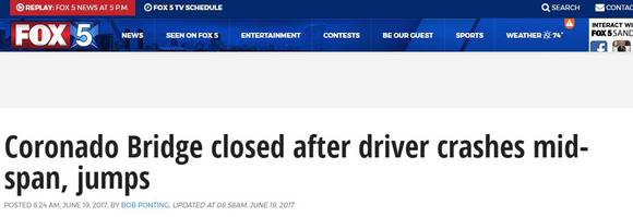 据美国福克斯电视台报道,一名中国留学生于本月18日晚,在圣迭戈市科罗纳多(Coronada)大桥跳海身亡。