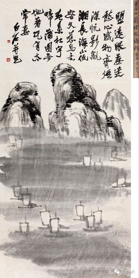 白石山水主张形而上的灵动之气,其章法之妙趣天成、用笔之神采为上,蕴含着浓郁的文人画气息和山水意境,代表了近代山水画发展的巅峰,承载着传统山水画过渡至现代水墨艺术的桥梁。
