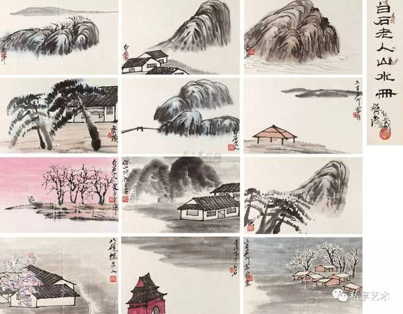 齐白石作品 咫尺天涯—辛未山水册 册页