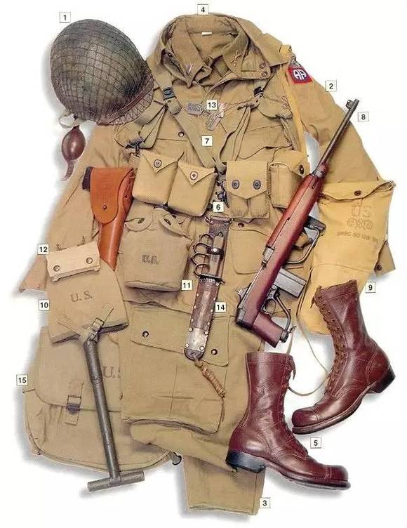 ▲诺曼底登陆时美军82空降师士兵装备
