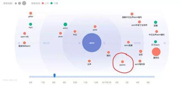 作为国内出现的第一条有关于ASMR的视频,它的出现在当时并没有带来太大的关注,而将ASMR的星星之火燎原国内的是一个名为「PPOMO」的韩国ASMR表演者,吸引了部分早期玩家。而用ASMR为关键字进行检索发现,同时期的百度指数中有关ASMR方面搜索相关度最高的词汇为「PPOMO」。