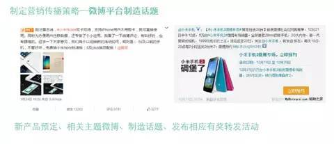 利用微博这个大平台,制造话题,炒热产品,比如“转发微博,赢取小米手机或者精美礼品”等诱惑力极大的活动。
