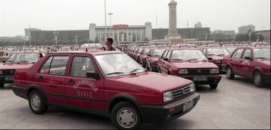 1994年夏利、富康和捷达开始进入了人们的视野,直到1998年,在北京市政府大力的行动下,“蝗虫”们被清扫一空。后辈们全身都是红色的,当时的歌曲也是红色的……也是这时开始,出租车的价格分为1.2元每公里和1.6元每公里。