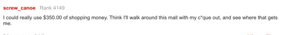 网友:这种好事我怎么没遇到!我也有大胸啊!我也要去商场转转得一张礼卡,价值不菲呢~