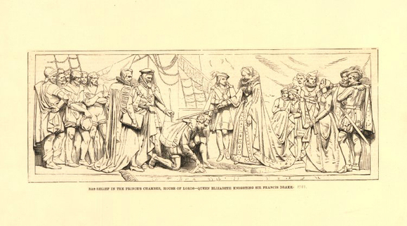 1580年,弗朗西斯·德雷克(Francis Drake)成为了英国历史上第一个、也是世界历史上第二个驾船环游地球的船长。这一壮举耗时近三年才得以完成,相当于16世纪的“太空竞赛”,标志着资源处于劣势的英国首次在航海技术上超越西班牙,并且掠夺了西班牙帝国的庞大财富。顺利返航后,德雷克获得了国家英雄的待遇。德雷克率领的舰队旗舰鹈鹕号(Pelican)在航海途中改名为金鹿号(Golden Hind),据说伊丽莎白女王授予这位出身在英国西南部德文郡的贫苦农民之子骑士称号的地方,正是在金鹿号的甲板上。