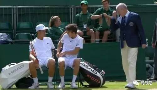 就在这次温网青少年男双比赛现场,中国球员吴易昺和搭档因为内裤颜色不达标( _ ),穿了黑色而不是白色,被要求“现场换内裤”,换好才能继续比赛...