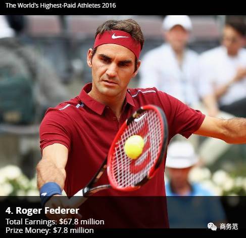 费德勒由于战绩卓越和风度翩翩的优雅形象,在福布斯网坛年度吸金榜上已经连续10年,稳居榜首。