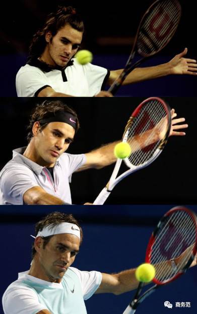 从费德勒17岁起,网球品牌Wilson就开始赞助,到2006年改为终身合同,所以我们看到费德勒每次比赛用的都是Wilson的球拍~