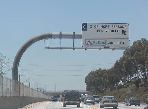路牌会清楚的显示,一周哪几天,什么时间段可以通行。例如洛杉矶部分道路在高峰期7点到9点,要求3人以上才可以走。