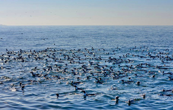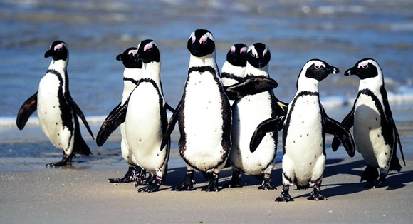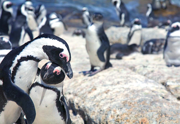 然而,对于生活在非洲大陆西南沿海海域的非洲企鹅来说,这样的生活习性也让它极易受到人类活动的威胁。据统计,1910年非洲约有企鹅150万只,2010年已下降至8万只,在一百年间减少近95%,同年起,世界自然保护联盟(IUCN)将非洲企鹅由原来的易危等级(VU)上调至濒危(EN)。