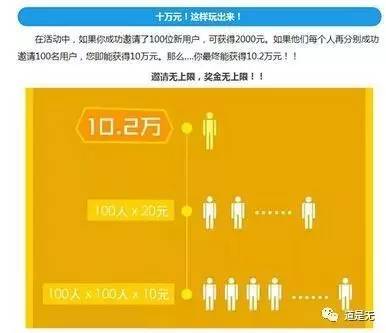 基本的逻辑是用户邀请新用户进来,不但可以获得奖励,而且新用户再邀请其他的新用户进入平台,还能继续分得奖励金。