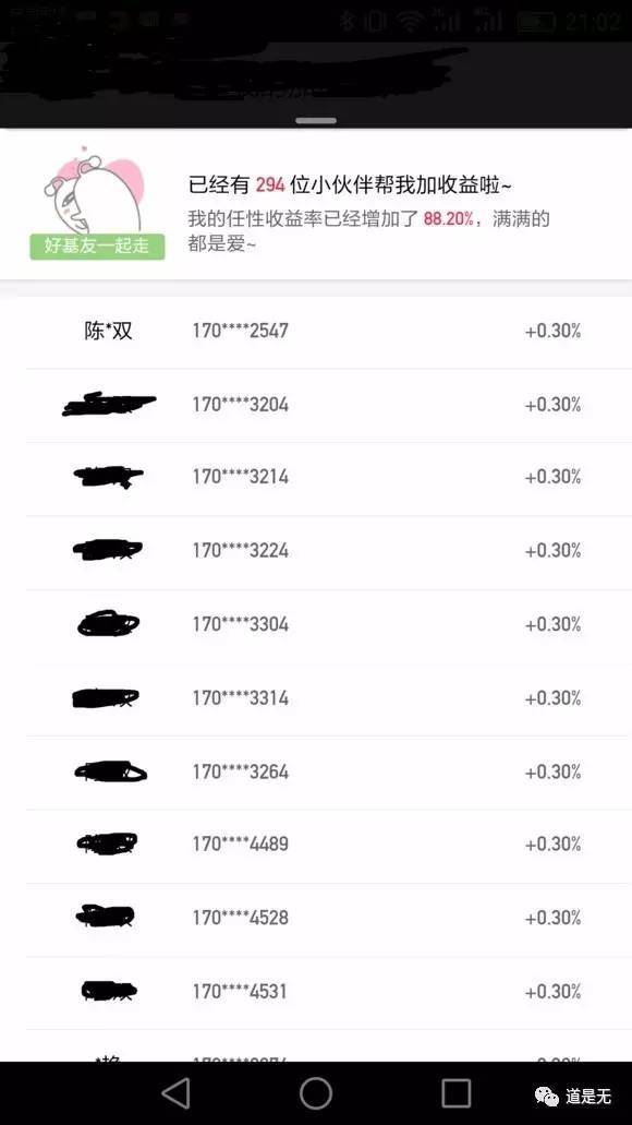 分享者A邀请到朋友B完成注册,则该A的收益可增加0.1%,B可以再邀请C,一条链路上最多可加0.3%的收益率,也就是邀请3位好友来参加(当时没有考虑到传销相关的问题,后来有调整,参见上图规则页)