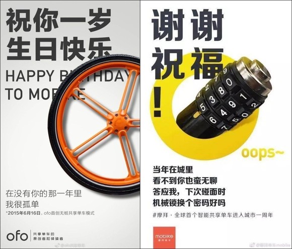 2.摩拜单车生日宴,ofo送上“甜蜜祝福”