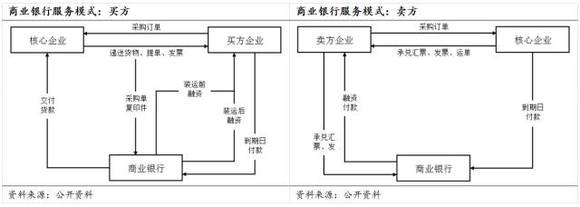 ● 商业银行服务模式:针对买方和卖方的融资需求,商业银行提供专业化的供应链金融服务。