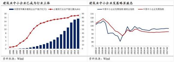进入新常态以来,建筑业粗放型发展模式已出现疲态,元立方金服平台研究人员认为,一方面,传统建筑业受制于产业链和服务周期过长,规避招标、虚假招标围标、转包和违法分包等现象在传统管理模式下难以改变;另一方面,随着供给侧结构性改革的深入推进,建筑业“去产能”措施不断加码,中小企业融资难问题逐渐浮出水面并日益加重,多数中小企业资金链紧张,转型步履维艰。