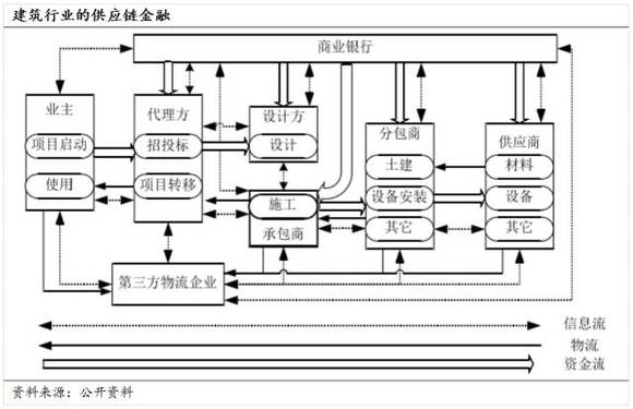 元立方金服平台研究人员注意到,我国中小建筑企业在行业中地位重要却面临极为严重的融资困难问题,在进入新常态后建筑业粗放型发展模式疲态已现的现在,中小企业资金链紧张使其转型步履维艰。元立方金服平台研究人员认为,供应链金融模式有望成为解决建筑业中小企业融资问题的最佳方案之一。供应链融资可以大型建筑企业为风险控制主体,通过责任捆绑,将银行信用有效地注入产业链中的核心企业以及其上下游配套中小企业。另一方面,政府对于建筑信息模型(BIM)技术的推广和支持将提升建筑业信息流动的透明度,夯实在建筑行业实现“供应链金融”模式应用的基础,而“互联网+”的发展趋势也将推动“供应链金融”模式应用,真正做到信息流、物流和资金流的“三流合一”。