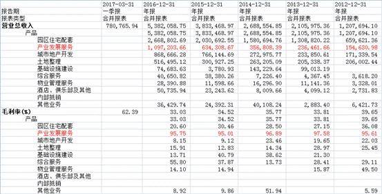 通过浏览财报,我们可以清楚看到,“产业发展服务”收入增长非常迅速,而且毛利率远远超过其他业务,保持在95%以上。