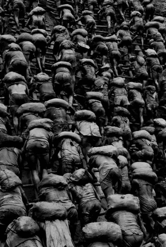 在萨尔加多27岁时,他最终放弃了经济学工作,成为了全职摄影师。因为记录萨尔加多而成为新闻摄影的标杆。在这幅照片中,一个巨大的坑穴式矿井,满是人类的躯体,从头到脚沾满了泥浆。这种乱作一团的工作方式,在这里,矿砂完全靠5万多个工人用手挖出。出于对人类体验的兴趣,萨尔加多开始在《劳动者》系列中探索劳动的主题,着眼于为农业、食品、矿产、石油和建筑行业全身心投入的男性和女性。“萨尔加多揭示了劳动世界的痛苦、美丽和残酷”,作者亚瑟·米勒如此评价这一系列创作。
