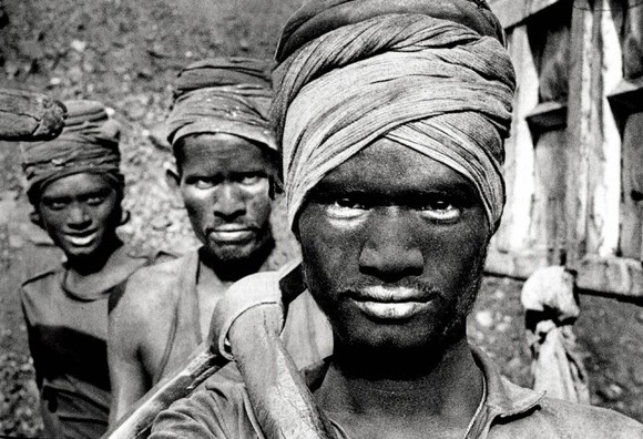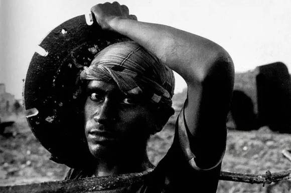 对印度煤炭工人的拍摄也是萨尔加多记录人类即将消逝的体力劳动场面系列专题中 的一个,煤矿工人面部除了眼睛与嘴巴外,其他地方由于长期工作在充满焦油粉尘 的环境而变成黑色,劳动者勤劳、朴素以及充满人类尊严的表情给我们留下深刻的 印象,这也是萨尔加多采取近距离拍摄的结果。