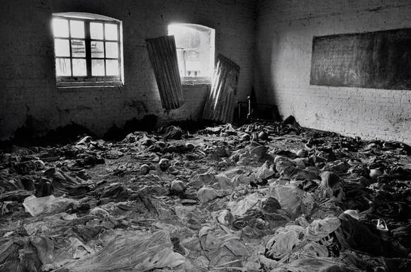994年,卢旺达总统的专机,被导弹击落。卢旺达境内乱成了一锅粥,胡图族人对图西族人展开了血腥屠杀。80-100万人死亡,死亡人数占当时世界总人口1/5000以上。下图是一颗手榴弹爆炸后的场景,没被炸死的,也会被乱刀砍死。