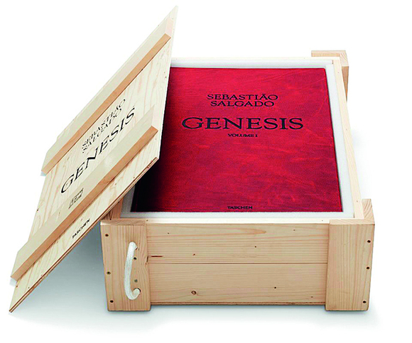 2012年,萨尔加多的爱人蕾莉亚构思并设计了两种版本的《创世纪》摄影集,这是塞巴斯提奥·萨尔加多历时八年,并进行多达32趟摄影之旅后才完成的巨作。此摄影集已由Taschen公司于2013年出版,并翻译成六种不同语言在全球发行。精装版巨型画册成为了很多书店的镇店之宝,全书全球可售仅剩100套,中国配额25套;日本建筑师安藤忠雄设计,西班牙手制的樱桃木书架,意大利印刷及钉装,目前中文版售价为:39800元人民币。
