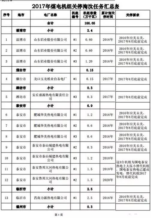 (二)尽快关停淘汰落后煤电机组。按照《加快淘汰煤电行业落后产能的行动方案》(鲁发改能源〔2016〕1160号)要求,对已列入2017年及以前关停计划但尚未关停的166.65万千瓦机组(附件3),必须在8月底前停止运行。