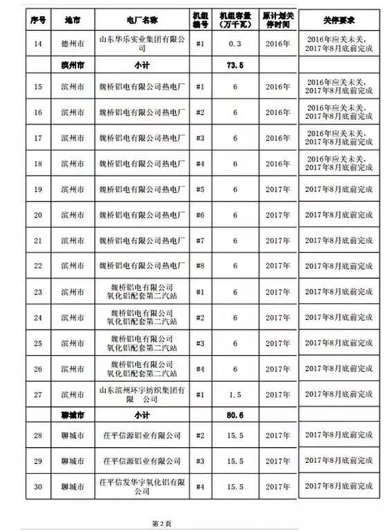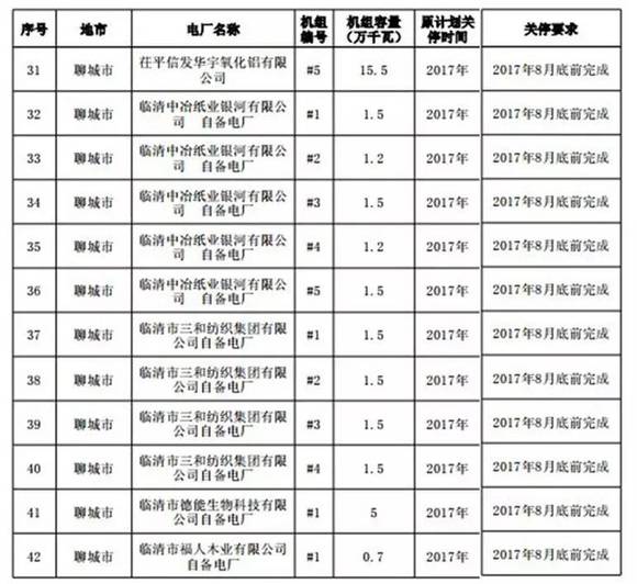 其中,魏桥停运煤电机组570万千瓦左右;聊城市信发集团停运煤电机组100万千瓦左右。(不含已纳入2017年及以前年度淘汰关停机组,也就是说不包括在下表里。)