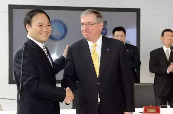 上午10点左右,李书福和福特汽车CFO刘易斯·布斯分别签字,然后两人握手,交割仪式完成。