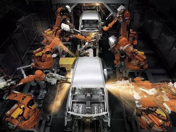 ▲吉利生产车间,焊接机器手正在工作